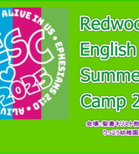 2025年6月13日Redwood English Summer Camp 2025開催。7月21日(月)~7月26日(土)今年は当教会とりっこう幼稚園の2会場で行われます。詳細はタイトルをクリックしてください。... -